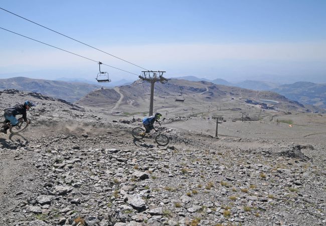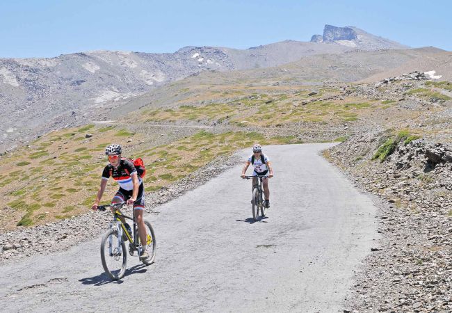 När man vill cykla i högre berg så hyr man även ett cykelställ och tar med sig cyklarna till Sierra Nevada bergen så erbjuder även här något för alla men det går att även tillfredställa även den mest kräsna cyklisten här, mycket fin körning. X-Bikes ger er olika turtips efter er erfarenhet.